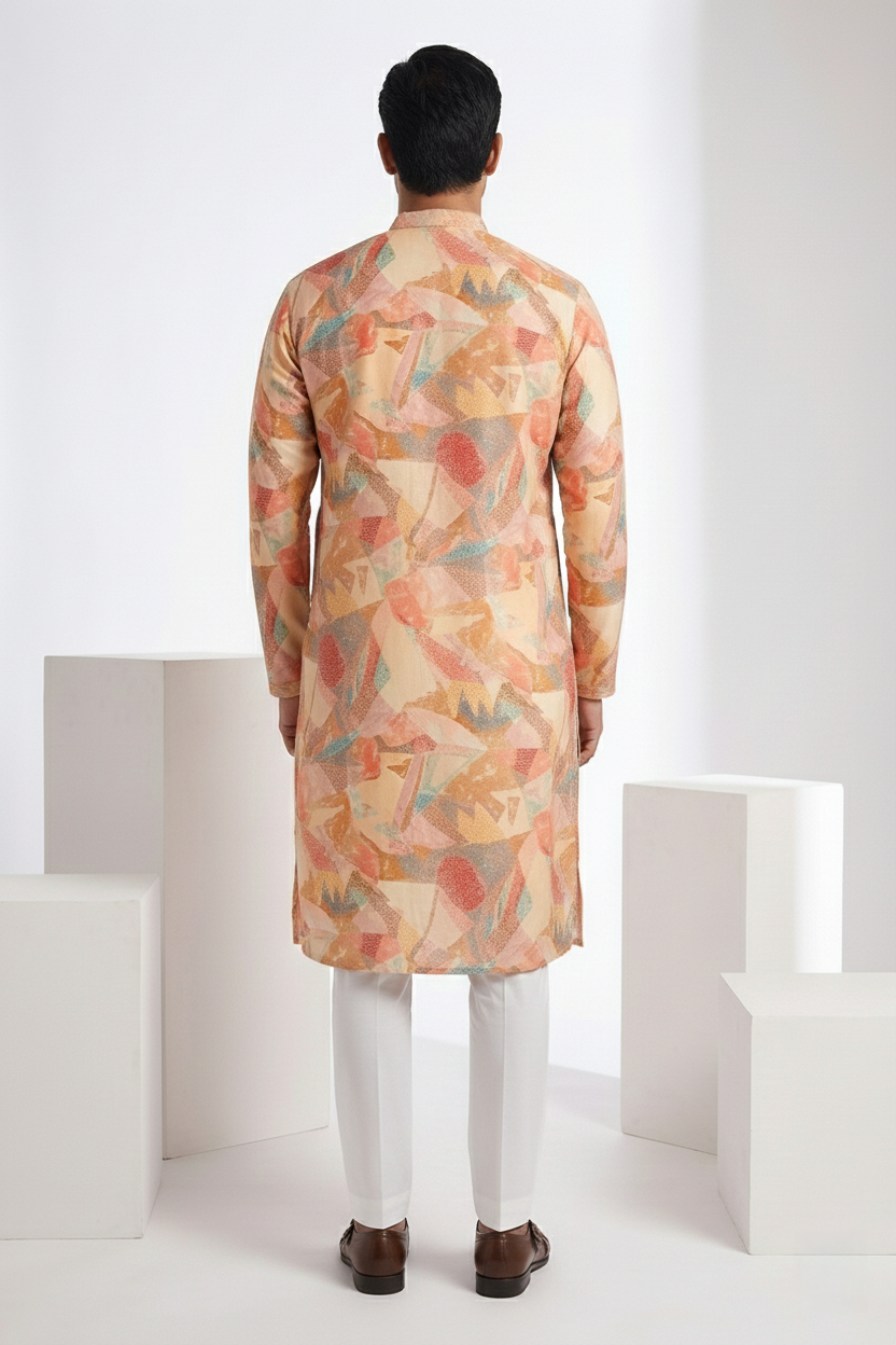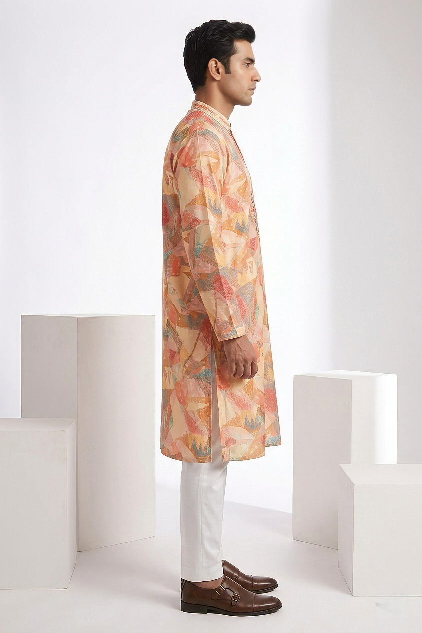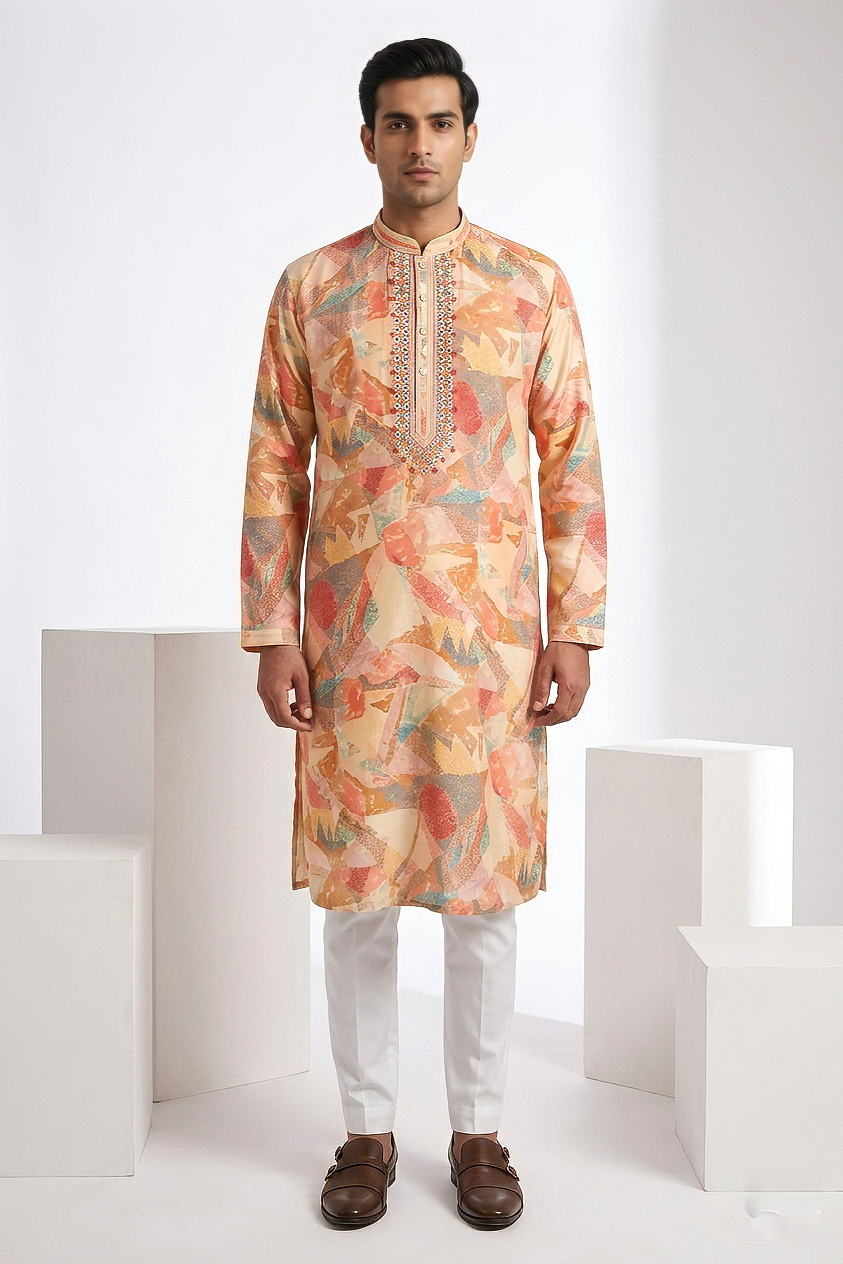 printed kurta featuring embroidered and mirror neck work details kurta top kurta langth-42