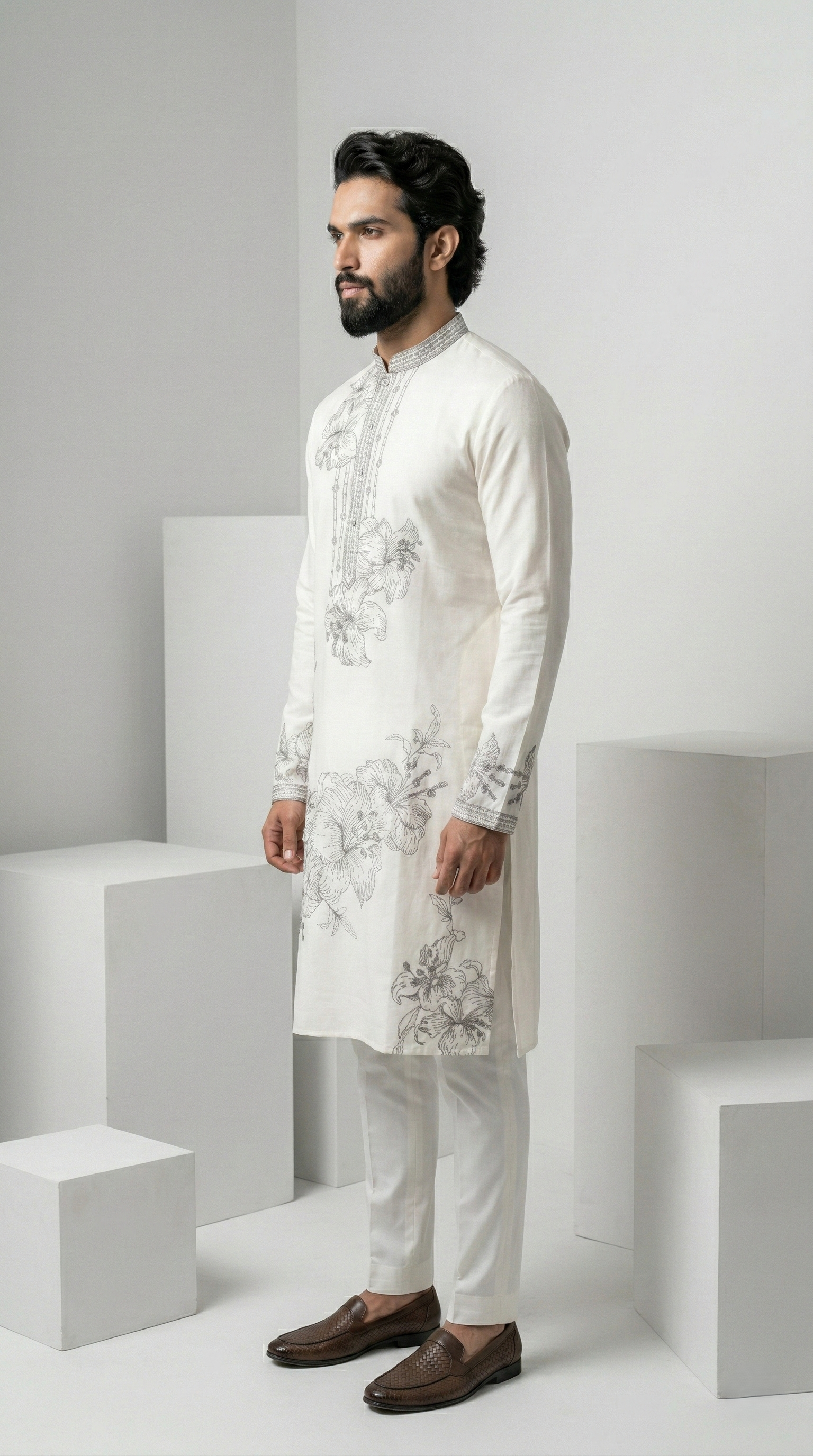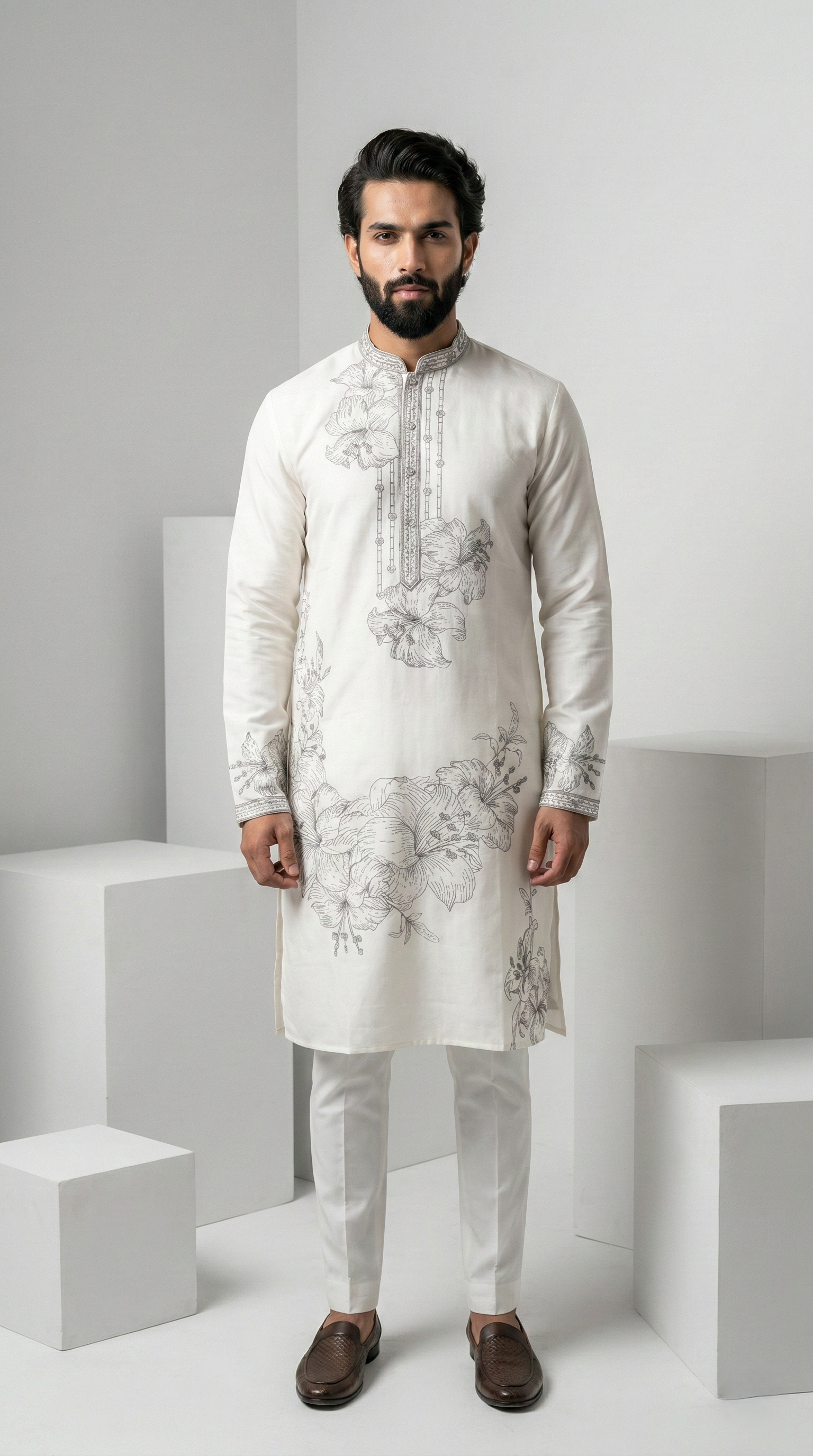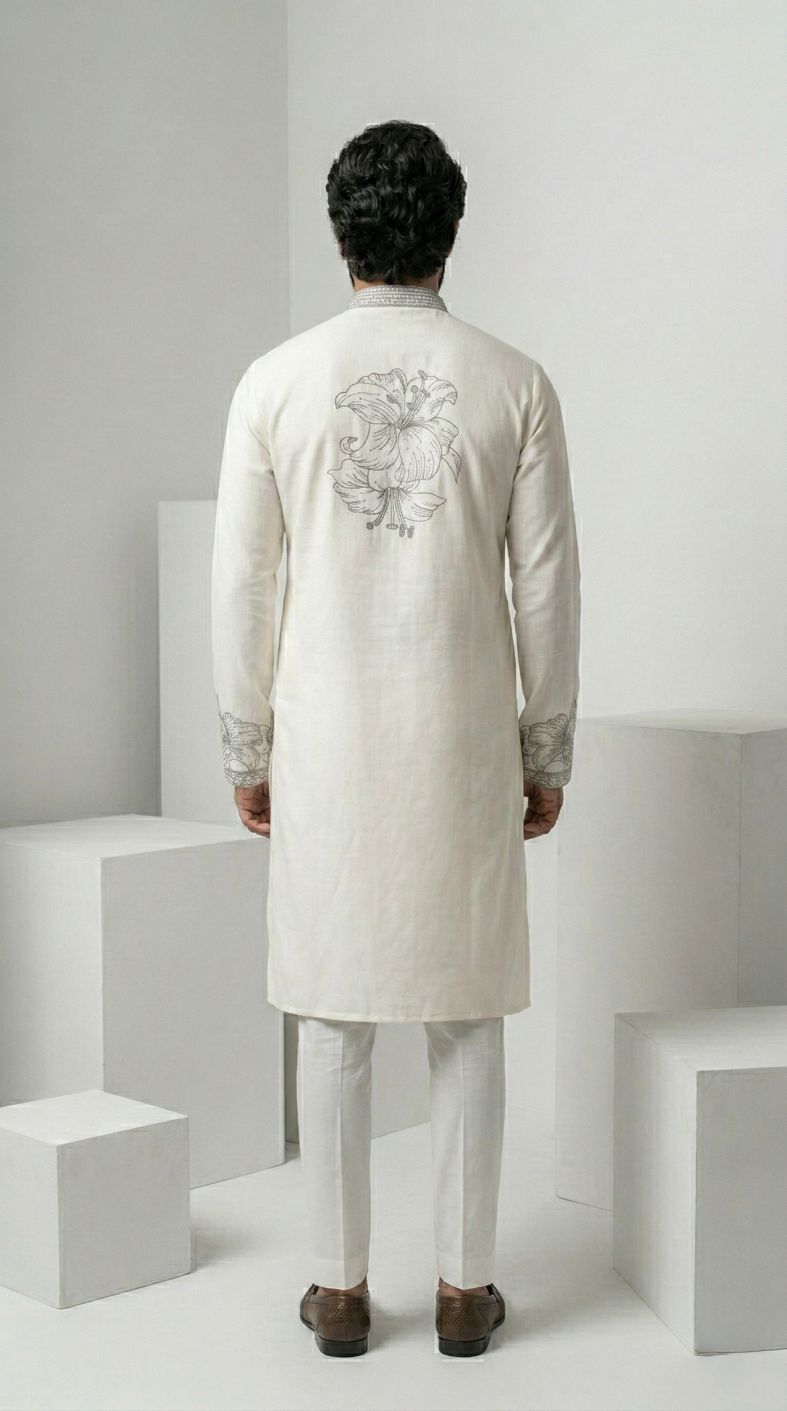 We maintain the inherent qualities of our products with the utmost care but due to the nature of fabrics, we do not guarantee the garment’s embroidery or any colour bleeding therein.
